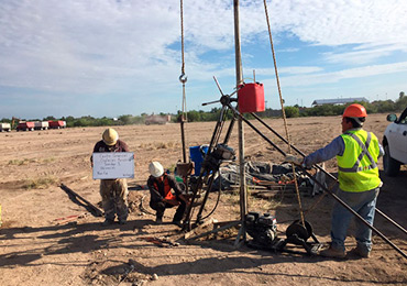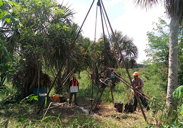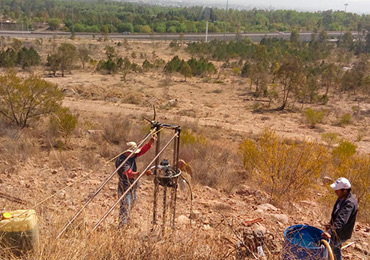 Trabajos realizados: Perforación de sondeos, pozos a cielo abierto y pruebas de permeabilidad.