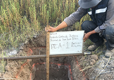 Trabajos realizados: Sondeos exploratorios, pruebas de penetración estándar y pozos a cielo abierto.